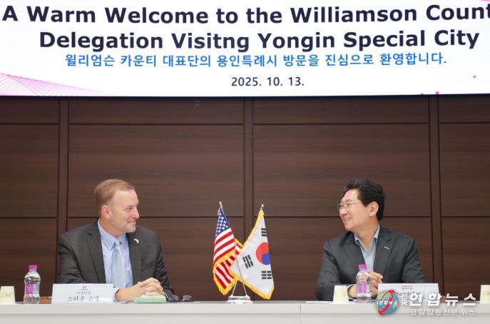 전국연합뉴스 박남호 기자 | 이상일 용인특례시장이 13일 용인의 자매도시인 미국 텍사스주 윌리엄슨카운티의 대표단과 만나 양 도시의 발전을 위한 협력 방안을 논의했다.