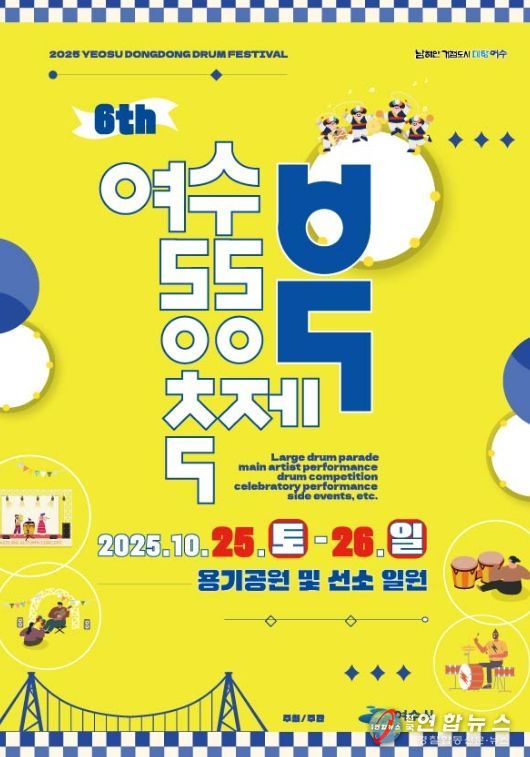 전국연합뉴스 김철환 기자 | 여수시는 오는 10월 25일부터 26일까지 주말 이틀간 선소 및 용기공원 일원에서 ‘2025 여수동동북축제’를 개최한다.