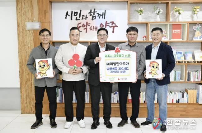 전국연합뉴스 박점규 기자 | 양주시가 지난 13일 광적면 소재 ㈜리빙인아로마로부터 방향제품 300세트(환산가액 500만 원)를 기탁받았다.