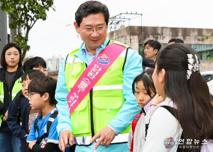 전국연합뉴스 박남호 기자 | 이상일 용인특례시장은 14일 아침 처인구 고림로에 위치한 고진초등학교 정문 횡단보도에서 어린이들의 안전한 통학환경 조성을 위한 교통지도 봉사활동에 참여하고 학교 주변 통학로를 점검했다.