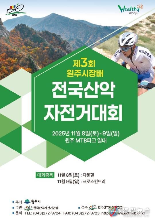 전국연합뉴스 유근택 기자 | 원주시는 11월 8일부터 9일까지 이틀간 신림면 원주산악자전거파크, 피노키오 숲에서 “제3회 원주시장배 전국산악자전거대회’를 개최한다.