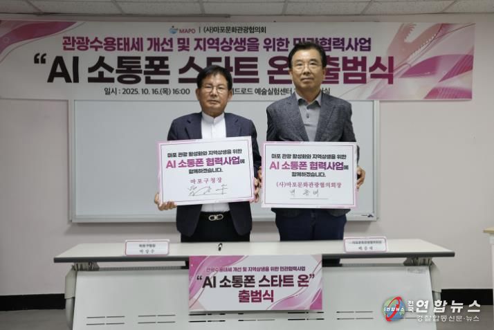 마포구는 10월 16일 오후 4시, 레드로드예술실험센터 2층 세미나실에서 ‘AI 소통폰 스타트 온(Start ON)’ 협력사업 출범식을 열고 외국인 관광객과 상인의 소통 강화를 위한 민관 협력의 첫발을 내디뎠다.