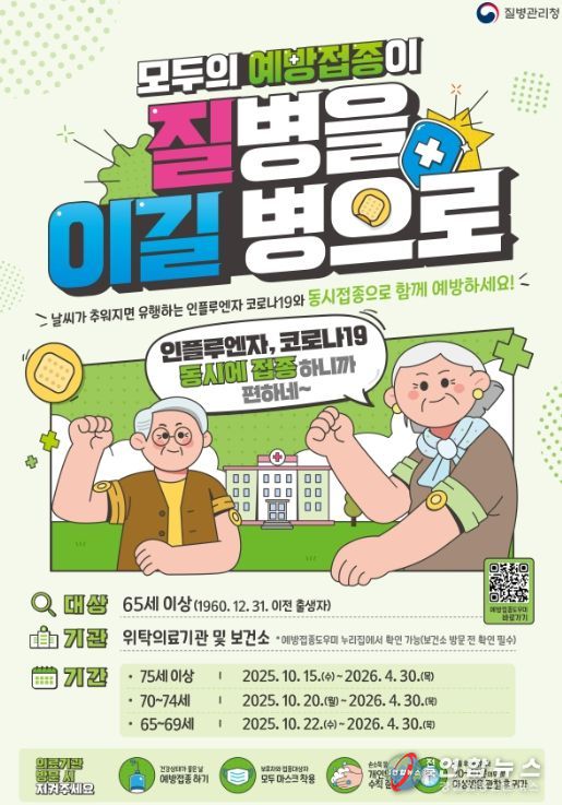 17일 시에 따르면 65세 이상 어르신부터 인플루엔자 및 코로나19 백신 접종이 동시에 가능하며, 연령별로 순차적으로 진행된다.
