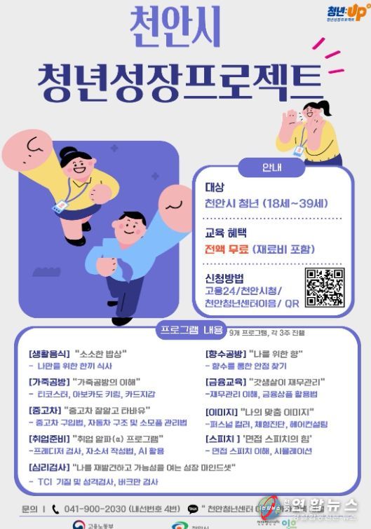 전국연합뉴스 김대환 기자 | 천안시는 청년들의 ‘쉬었음’ 예방을 위한 청년성장프로젝트 2차 참여자를 선착순 모집한다고 17일 밝혔다.