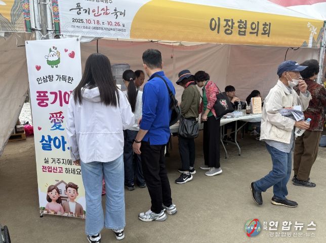 전국연합뉴스 김삿갓 기자 | 영주시 풍기읍은 ‘2025 경북영주풍기인삼축제 · 영주장날 농특산물대축제’ 기간 동안 전입 지원 사업 및 출생축하금 제도 홍보를 위한 ‘풍기愛 살아요’ 부스를 운영한다고 20일 밝혔다.