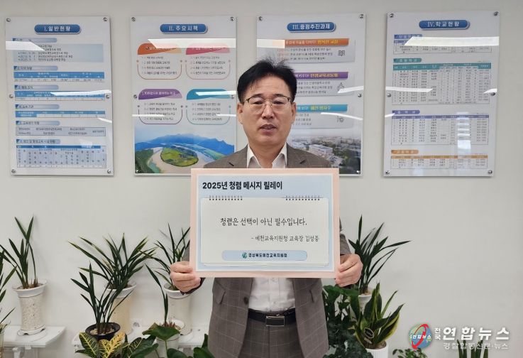 전국연합뉴스 기자 | 경상북도예천교육지원청은 청렴의식 제고 및 청렴 실천 생활화를 위해 2025. 10. 20.부터 24.까지 5일간 청렴주간'청렴 챌린지 5Days'를 운영한다고 밝혔다.