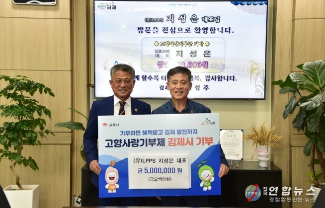 전국연합뉴스 최성용 기자 | 김제시는 고향사랑기부제가 시작된 지난 2023년부터 매년 500만원씩 기부하던 (유)LPPS(대표 지성은)가 올해는 지정기부사업인 ‘김제形 365일 24시간 아이돌봄센터 운영’에 고향사랑기부금 500만원을 기탁했다고 밝혔다.