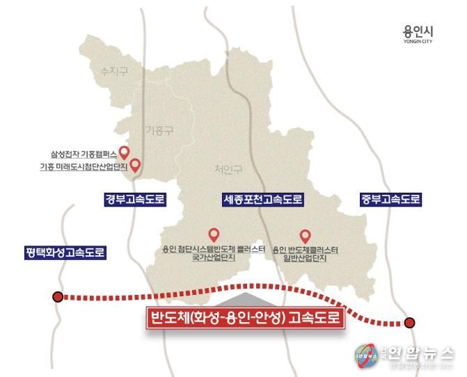 ‘반도체 고속도로’는 이동·남사읍의 첨단시스템반도체 국가산업단지와 원삼면의 용인반도체클러스터를 동서로 연결하는 핵심 산업축으로 경부고속도로, 국토45호선, 포천~세종 고속도로, 중부고속도로와 연결된다.