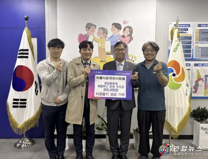 전국연합뉴스 박점규 기자 | 양주시 회천2동 지역공동체 모임 ‘아름다운 회천사람들’이 최근 천일홍축제에서 체험부스를 운영해 마련한 수익금 365,000원을 기부했다.
