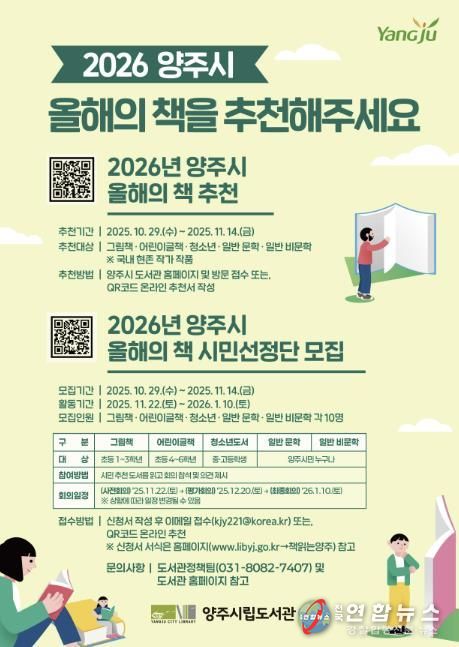 전국연합뉴스 박점규 기자 | 양주시가 11월 14일까지 2026년 양주시 『올해의 책』을 추천받는다.