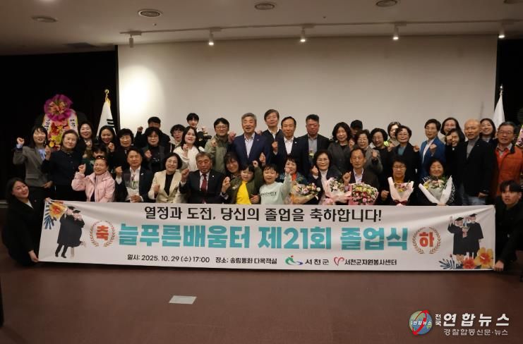 전국연합뉴스 김대환 기자 | 서천군과 서천군자원봉사센터는 성인 문해·학력보완 평생교육 프로그램 '늘푸른배움터'의 성과를 공유하는 ‘제21회 늘푸른배움터 졸업식’을 지난 29일 장항송림동화에서 개최했다.