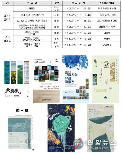 삼거리 갤러리에서는 ▲11월 5~ 9일, 해뜰전 ▲11월 12~ 16일, 오아 SEE YOU(봣슈?) ▲11월 19~ 23일, 2025년 그림사랑 유화 작품전 ▲11월 26~ 30일, 바람꽃자수 시무 민화회원전 우리그림민화이야기 세번째가 진행된다.
