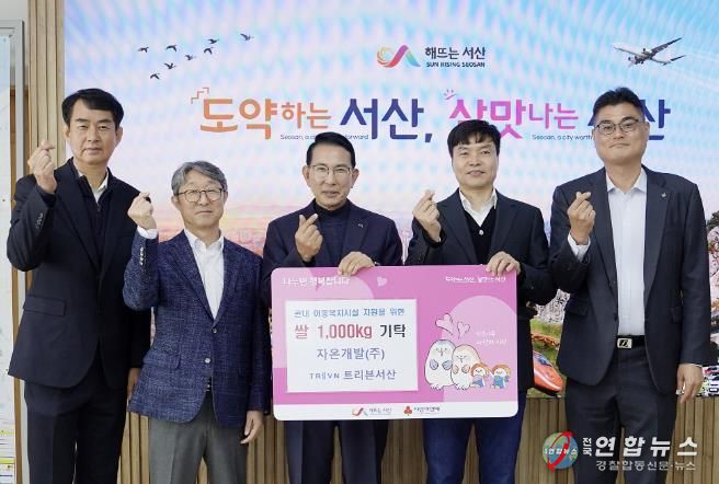 전국연합뉴스 김용태 기자 | 충남 서산시는 5일 시청 시장실에서 자온개발㈜·트리븐 서산의 이웃돕기 쌀 기탁식을 개최했다고 밝혔다.
