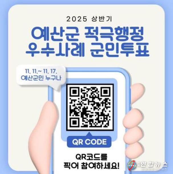 전국연합뉴스 김용태 기자 | 예산군은 2025년 상반기 적극행정 우수공무원 선발을 위해 오는 11일부터 17일까지 7일간 온라인 군민투표를 실시한다고 밝혔다.