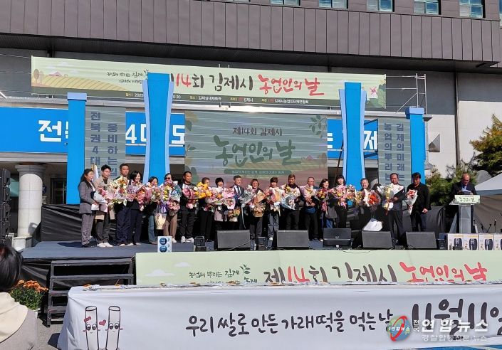 전국연합뉴스 최성용 기자 | 김제시는 11일, 김제시 실내체육관 앞마당에서 ‘제14회 김제시 농업인의 날’ 행사를 '농업의 뿌리는 깊게, 김제의 미래는 높게'라는 주제로 내외빈과 농업인 2,000여 명이 참석한 가운데 성황리에 개최했다고 밝혔다.