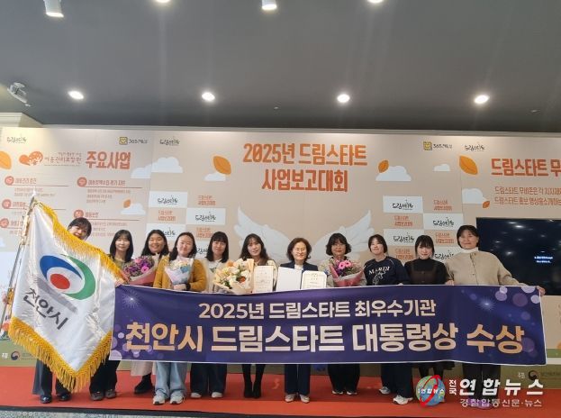 전국연합뉴스 김대환 기자 | 천안시는 20일 보건복지부 주관 2025년 드림스타트 사업운영 평가결과 최우수기관으로 선정돼 대통령표창을 받았다.