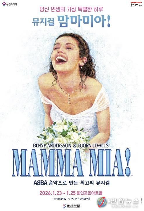 전국연합뉴스 박남호 기자 | 용인문화재단은 오는 2026년 1월 23일부터 25일까지 뮤지컬 ‘맘마미아!’를 용인포은아트홀에서 개최한다고 밝혔다. 관람 연령은 초등학생 이상으로, 겨울방학 기간 가족·친구·연인 등 남녀노소 누구나 함께 즐길 수 있는 대표 뮤지컬을 3일간 총 4회에 걸쳐 선보인다.