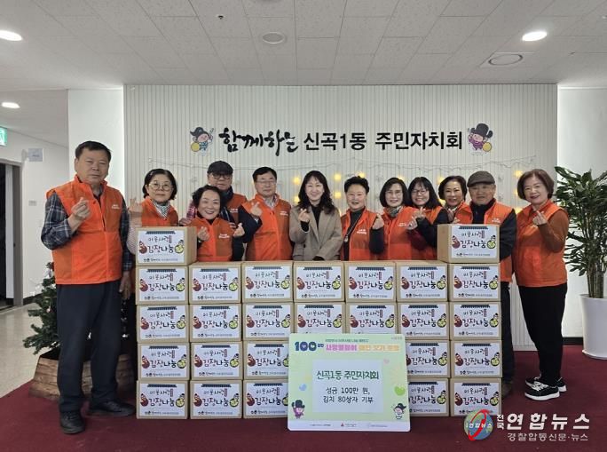 전국연합뉴스 박점규 기자 | 의정부시 신곡1동주민센터는 12월 1일 신곡1동 주민자치회가 성금 100만 원과 김장김치 80상자를 기탁했다고 밝혔다.