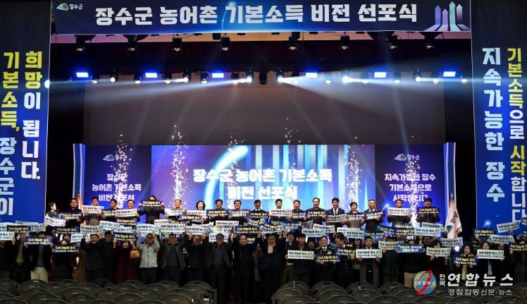 전국연합뉴스 최성용 기자 | 장수군은 8일 한누리전당 산디관에서 ‘농어촌 기본소득 비전 선포식’ 행사가 성황리에 개최됐다고 밝혔다.