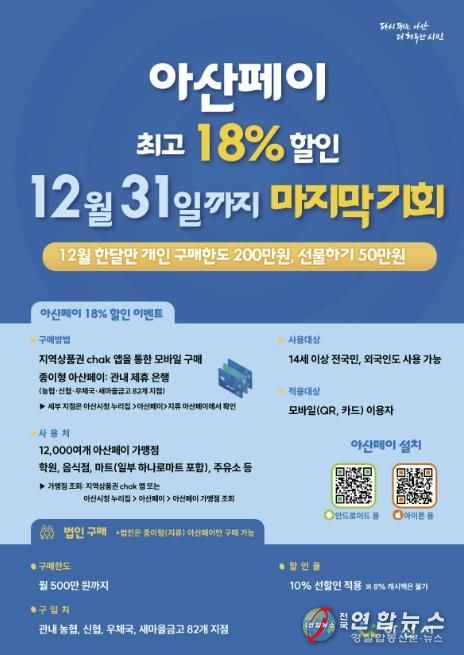 아산시는 시민 체감도를 높이기 위해 연말까지 아산페이 할인 혜택을 집중 운영하고 있다. 현재 개인 이용자는 10% 선할인과 사용금액의 8% 캐시백을 더한 최대 18% 혜택을 적용받고 있다. 이는 시민의 물가 부담을 낮추는 동시에, 소비가 지역 소상공인 매출로 곧바로 이어지도록 설계된 구조다.