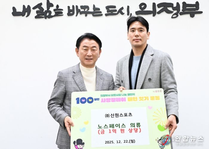 전국연합뉴스 박점규 기자 | 의정부시는 12월 22일 ㈜신원스포츠 노스페이스 양주점(LF스퀘어몰)과 포천송우점이 관내 아동복지시설에 아동용 의류 및 가방 등 1억 원 상당의 물품을 기부했다고 밝혔다.