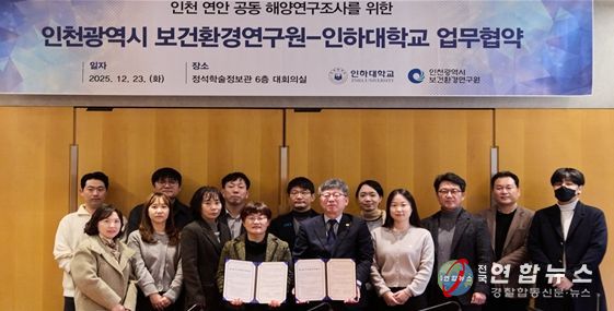 전국연합뉴스 박우배 기자 | 인천광역시 보건환경연구원은 인하대학교와 12월 23일 ‘인천해역 해양환경 공동조사 및 연구협력 업무협약(MOU)’을 체결했다고 밝혔다.