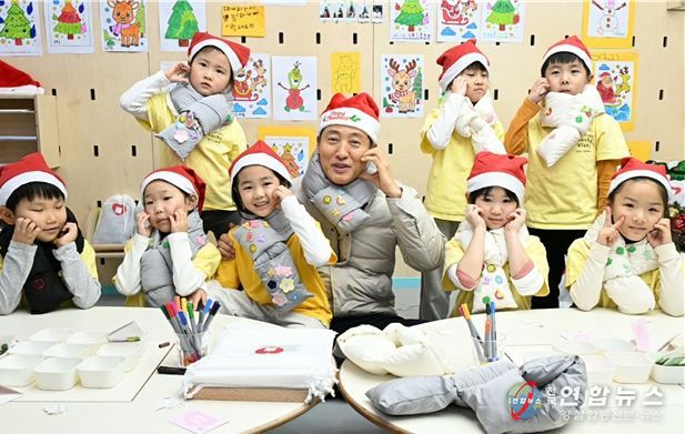 2층 서울형 키즈카페에서 만난 어린이들과 홀몸 어르신에게 전할 ‘사랑의 목도리’를 만든 오 시장은 ‘목도리와 함께 따뜻한 성탄절 보내시길 바란다’는 메시지를 적어 전달했다.