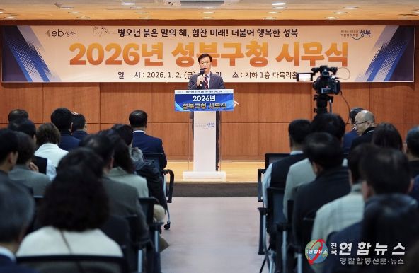 전국연합뉴스 김태연 기자 | 서울 성북구가 2일 성북구청 다목적홀에서 전 공직자가 함께하는 2026년 성북구 직원 시무식을 개최하고, 구민이 일상에서 체감하는 변화를 만들어 가기 위한 한 해의 출발을 알렸다.