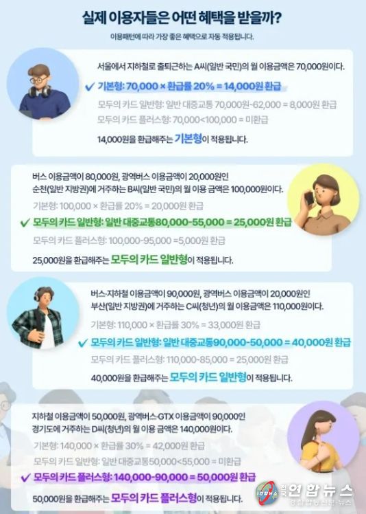 모두의 카드가 시행됨에 따라 한 달 동안 환급 기준금액을 초과해 대중교통비를 지출한 경우 초과분에 대해 모두 돌려받을 수 있다.