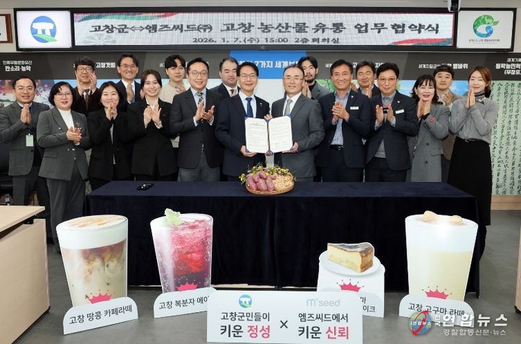 전국연합뉴스 김현호 기자 | 고창군이 7일 군청에서 엠즈씨드(주)(대표 권익범)와 고창 농산물 유통 활성화를 위한 업무협약(MOU)을 체결하고 지역 상생을 위한 협력 모델 구축에 나섰다.