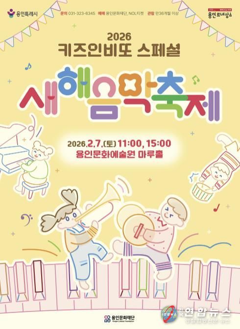 전국연합뉴스 박남호 기자 | 용인문화재단은 오는 2월 7일 용인문화예술원 마루홀에서 ’2026 키즈인비또‘ 스페셜 공연 '새해 음악 축제'를 개최한다. 유‧아동을 위한 융‧복합 클래식 공연 키즈인비또는 올해로 15년째 이어지고 있는 용인문화재단의 특화 가족 공연 콘텐츠이다.
