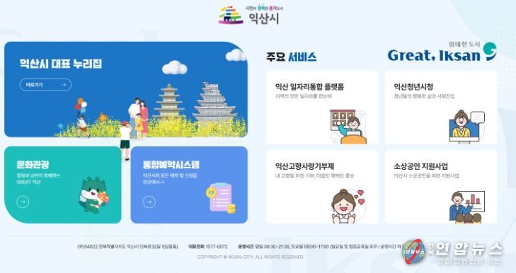 전국연합뉴스 최성용 기자 | 익산시가 10년 만에 대표 누리집을 전면 개편하고 8일 운영을 시작했다.