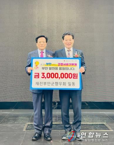 전국연합뉴스 김현호 기자 | 부안군은 지난 10일 알펜시아컨벤션에서 열린 재전부안군향우회 회장 이취임식에서 향우회원 일동이 고향사랑기부금 300만원을 기탁했다고 밝혔다.