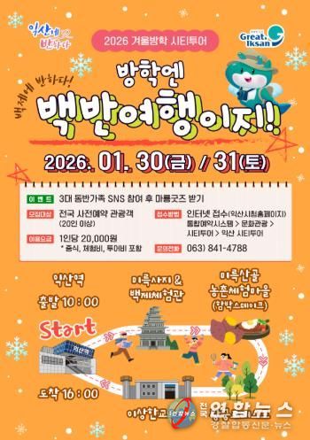 전국연합뉴스 최성용 기자 | 익산시가 겨울방학을 맞아 지역의 역사와 문화를 함께 즐길 수 있는 시티투어를 운영한다.