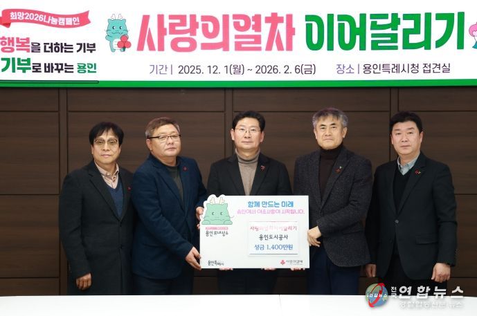 전국연합뉴스 박남호 기자 | 용인도시공사는 19일 ‘노사합동 사랑의열차 이어달리기’ 성금 1,400만원을 용인특례시에 기탁했다.