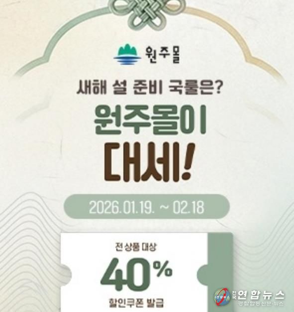 전국연합뉴스 유근택 기자 | 원주시 공식 인터넷 쇼핑몰 ‘원주몰’이 설 명절을 맞아 다음 달 18일까지 ‘2026 원주몰 설맞이 기획전’을 진행한다.