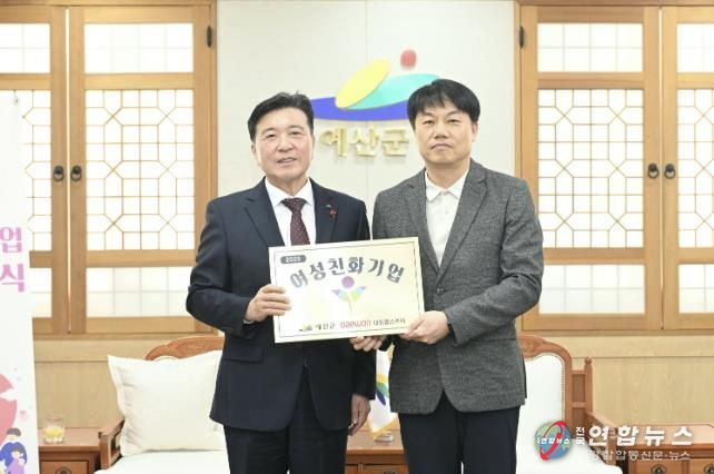 전국연합뉴스 김용태 기자 | 예산군은 지난 23일 여성친화적 근무환경 조성에 앞장서 온 대원헬스케어㈜에 ‘여성친화기업’ 인증 현판을 전달했다고 밝혔다.