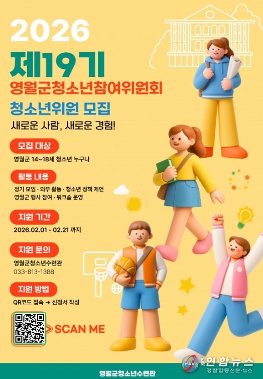 전국연합뉴스 기자 | 영월군청소년수련관은 관내 중~고등학교 청소년을 대상으로 오는 21일(토)까지 영월군청소년참여기구 신규, 연임 위원을 추가 모집한다.