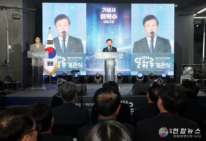 전국연합뉴스 최성용 기자 | 정읍의 역사와 국가유산을 빛과 미디어아트로 풀어낸 복합 전시공간 ‘정읍 국가유산 미디어아트관 1894 달하루’가 6일 문을 열고 본격적인 운영에 들어갔다.