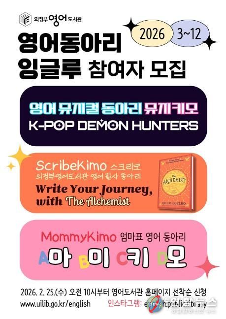 전국연합뉴스 박점규 기자 | 의정부영어도서관은 3월부터 12월까지 영어 뮤지컬, 영어 원서 필사, 엄마표 영어 등 다양한 활동으로 구성된 영어 동아리 ‘잉글루(Englu)’를 운영해 시민의 영어 역량 강화와 영어학습 공동체 활성화를 추진한다.