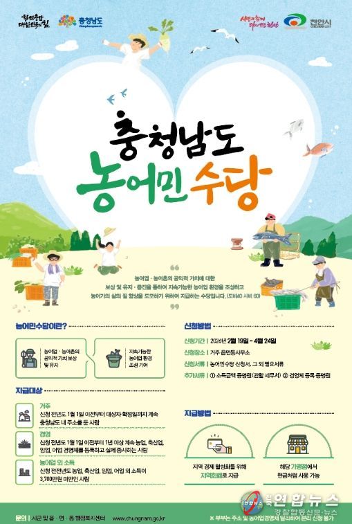 신청 대상은 2025년 1월 1일 이전부터 충청남도 내에 주민등록을 두고, 같은 기간 농어업 경영체 등록을 유지하고 있는 농어민이다.