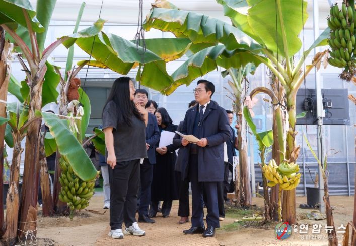 이어 동남구 북면의 청년농업인 아열대과수 육성 시범사업지를 찾아 기후변화에 대응한 농업 기반 조성 현황을 점검했다. 시는 아열대과수 재배와 스마트팜 기술을 도입해 새로운 작물을 발굴하고, 안정적인 생산 기반을 마련한다.