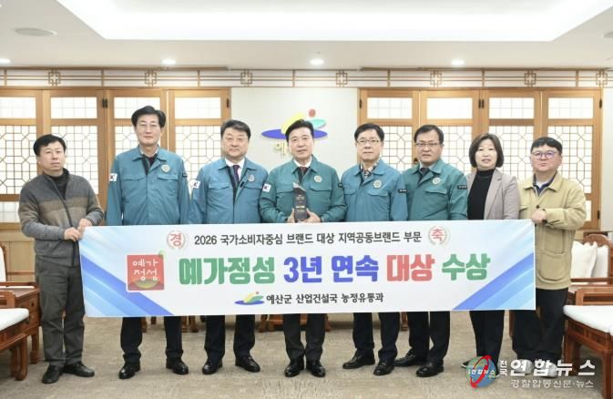전국연합뉴스 김용태 기자 | 예산군 농특산물 공동브랜드 ‘예가정성’이 브랜드 인지도와 선호도 측면에서 소비자에게 높은 평가를 받아 3년 연속 ‘2026 국가 소비자중심 브랜드(지역공동브랜드 부문) 대상’을 수상했다.