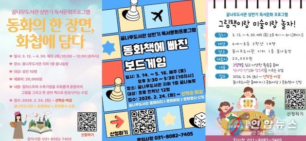 또한 ‘동화책에 빠진 보드게임’ 프로그램은 오는 3월 14일부터 5월 16일까지 매주 토요일 오후 3시 30분부터 5시 30분까지 총 10차시로 운영된다. 동화책을 읽고 이야기를 나눈 뒤 내용과 연계된 보드게임을 배우며 자연스럽게 독서에 대한 흥미를 높일 수 있도록 구성됐다. 대상은 초등학생 전 학년 12명이며 별도의 재료비는 없다.