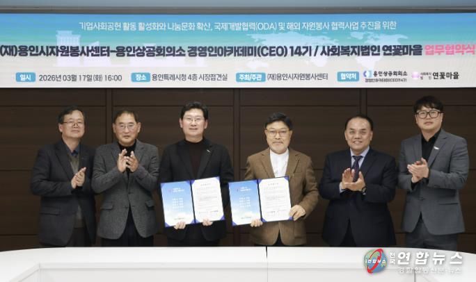 전국연합뉴스 기자 | 용인특례시는 17일 시청 접견실에서 용인시자원봉사센터가 용인상공회의소 경영인 아카데미(CEO) 14기와 사회복지법인 연꽃마을과 각각 업무협약을 체결했다고 18일 밝혔다.