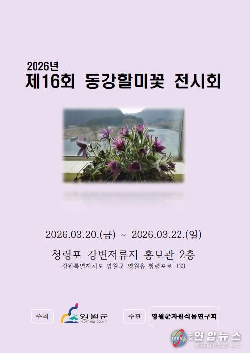 전국연합뉴스 기자 | 2026년 3월 20일부터 22일까지 영월군 청령포 강변저류지 홍보관에서 제16회 동강할미꽃 전시회를 개최한다.