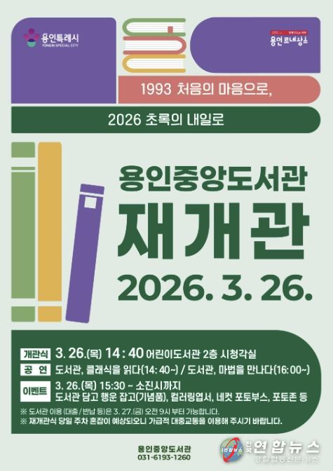 전국연합뉴스 기자 | 용인특례시 중앙도서관이 오는 26일 리모델링을 마치고 시민들을 새롭게 맞이한다.