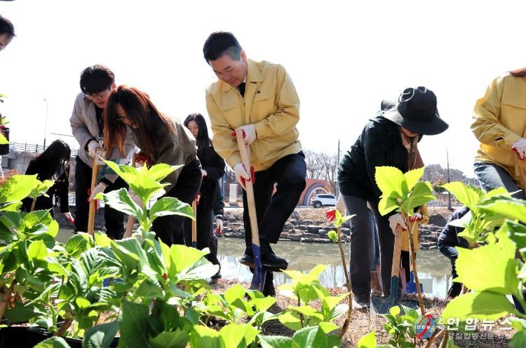 '모두가 누리는 가치있는 숲'이라는 주제로 열린 이날 행사에는 권익현 부안군수를 비롯한 공무원, 군의회, 부안군 산림조합, 일반군민 등 200여명이 참여했으며, 수국 2,000본을 정성껏 심으며 숲이 주는 가치와 자연의 소중함을 직접 체험하고 공유하는 시간을 가졌다.