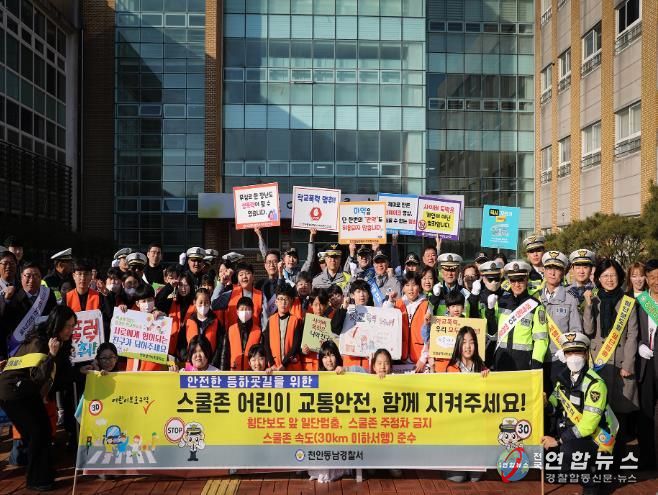 천안동남경찰서 주관으로 전개한 이번 캠페인은 천안시청, 천안교육지원청, 녹색어머니회, 모범운전자회 등 약50여명이 참여한 가운데, 어린이 교통안전에 대한 사회적 관심을 높이고 자발적인 참여와 유도를 통해 어린이보호구역 내 교통사고 예방을 위해 마련됐다.