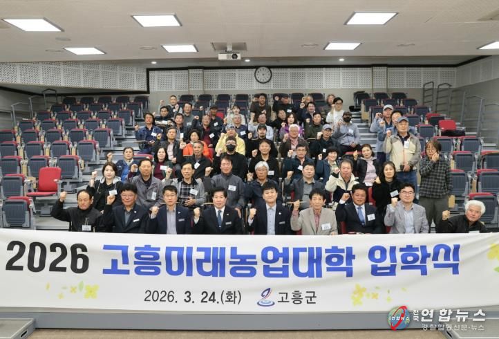 전국연합뉴스 김철환 기자 | 고흥군은 지난 24일 농업기술센터 대교육장에서 2026학년도 고흥미래농업대학 입학식을 개최하고, 지역 농업의 미래를 이끌 전문농업경영인 양성을 위한 본격적인 교육과정 운영에 들어갔다.